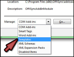 - From the Manage drop-down menu at the bottom of the dialogue box, choose Templates.